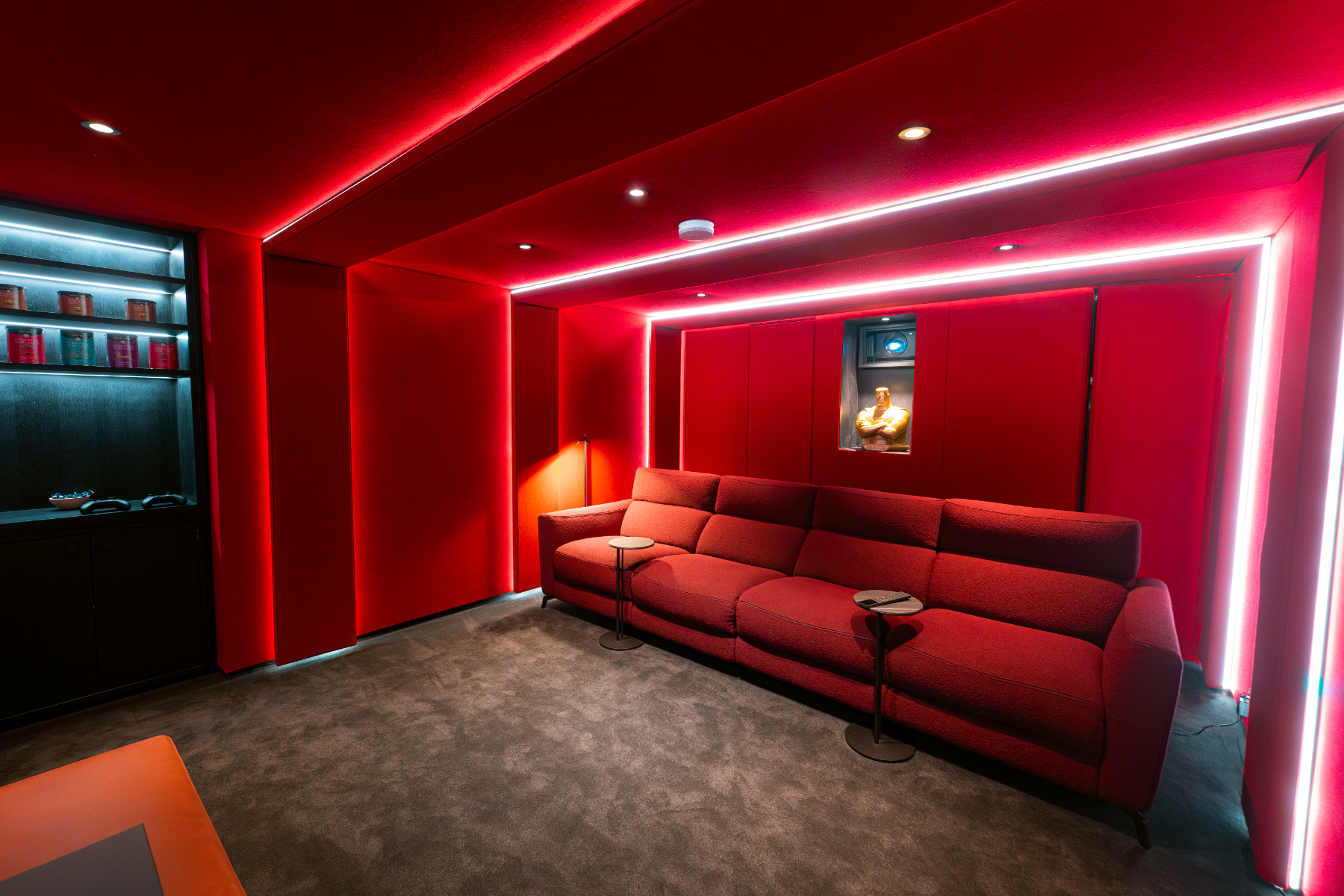 Bespoke red cinema room in historic town house