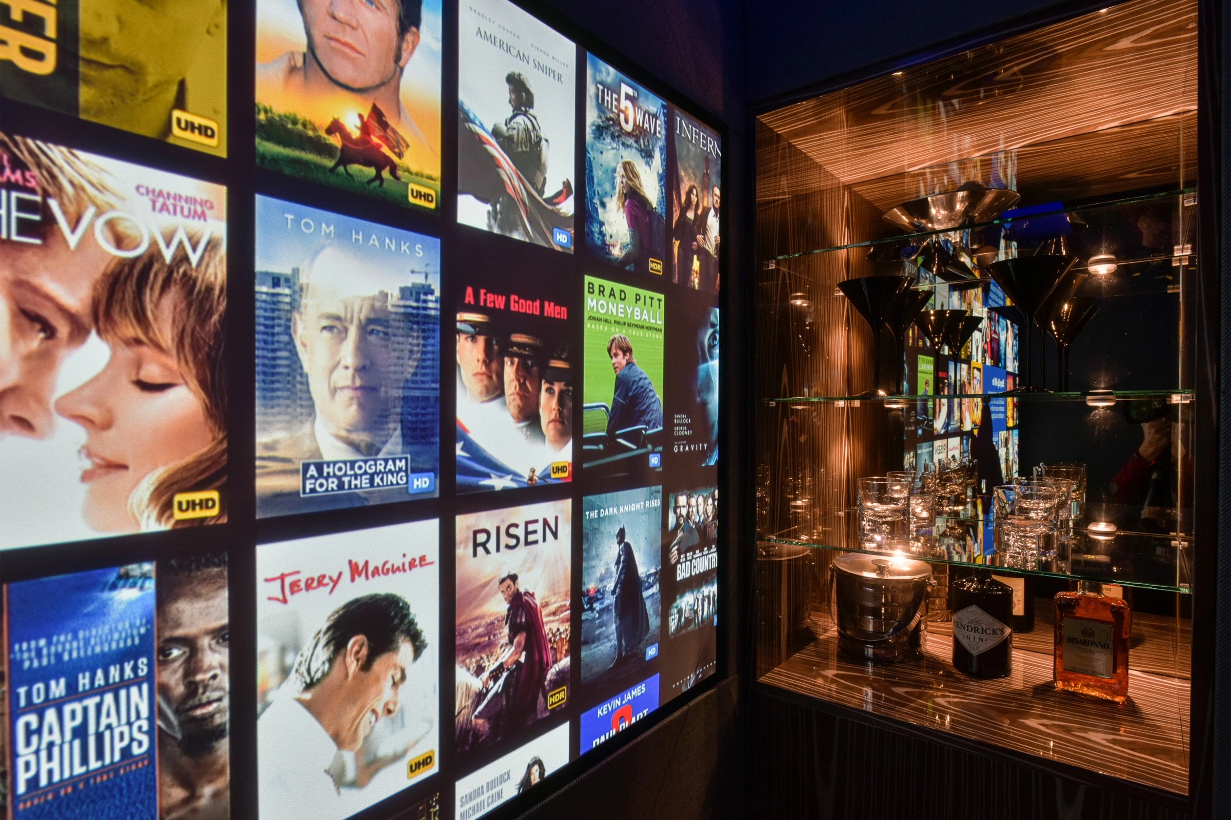 Our team really went the extra mile in order to showcase the best of an Atelier Luuxx installation. We combined cutting edge technology with a sleek interior re-fit and many bespoke features. The cinema room contains fully controllable automated Rako lighting, bespoke colour matched cinema seats and to complete the luxury finish, the walls were made up of a stretched wool fabric which had the added bonus of being excellent for the acoustics.